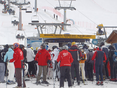 That's enough for now, but there's so much more to love about Bormio. Driving past houses where horses live on the bottom floor, à la Borat; paying €1.50 for a coffee in the highest mountain restaurant; marvelling at the occasional Italian 'Berlusconi tan' and plastic surgery disaster, and much, much more. Sadly we missed the incident that would have been the icing on the cake: early one morning, a bull came stoming through the main ski area in a mad rage. While the skiers could push away with their poles, one boarder apparently had to unstrap and use his stick as a shield until the local farmers arrived with pitchforks and chased it away. Maybe that's why the locals don't snowboard.... Don't let that put any of you riders off a trip though: even if you end up being gored by a rampaging beast, a week in Bormio's well worth it.